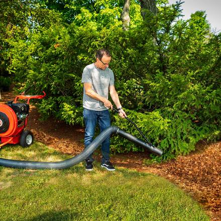 It is propelled by a 27cc engine which produces 450 cfm and up to 150 mph airspeed making it absolutely capable of dealing with all kinds of lawn debris. The xl vacuum hose allows you to clean tight corners flowerbeds under fences and any other hard to reach spot right from your leaf vac. As leaves are drawn into the vacuum impeller they are chopped and shredded into a fine mulch. Dr walk behind leaf vacs are perfect for leaf and lawn clean up in tight quarters where our larger tow behind vacs would be impractical.
