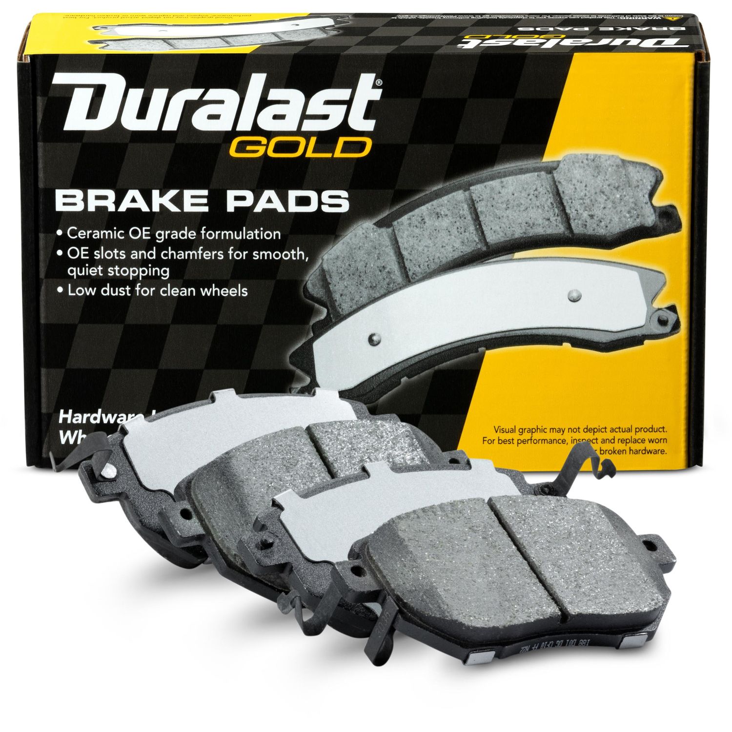 Duralast gold ceramics offer quiet stopping and ultra low brake dust. These ceramic brake pads are designed to be a direct replacement for your car s original brake pads and they perform remarkably well regardless of the road conditions. It seems like an obvious thing but galvanized steel is a rarity in the brake pad world. Duralast gold brake pads.