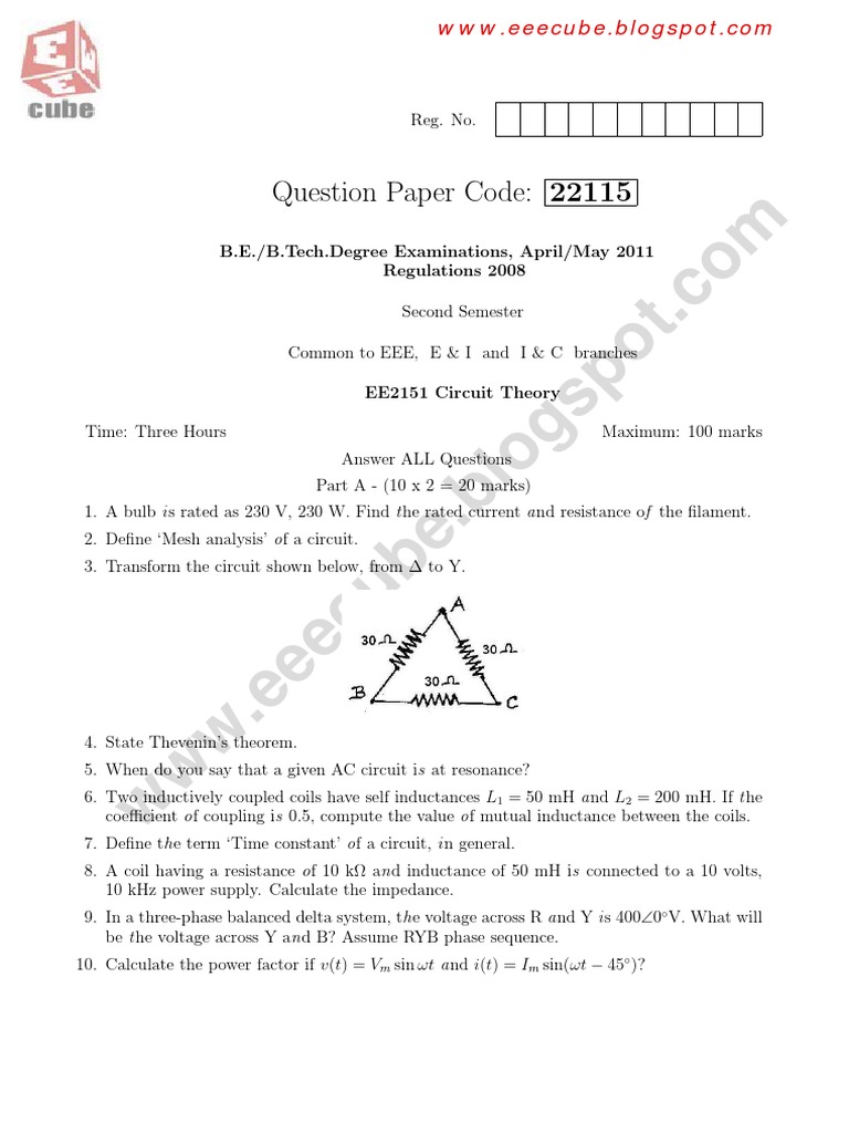 Ee2151 circuit theory question bank with answers. Ee2151 circuit theory important questions ee2151 ct 2 marks with answers notes previous year question papers. Here ee6201 question papers download link is provided and students can download the ee6201 previous year question papers and can make use of it. Ee2151 circuit theory question bank part a. Anna university question paper ee2151 circuit theory important questions 2 marks and 16 marks questions for eee department.